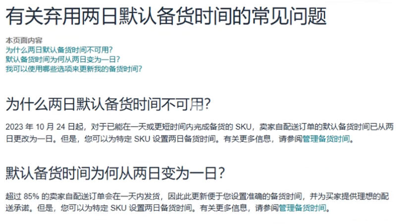 如果卖家暂时无法满足这一发货要求,可手动将处理时间改回1 天,但需要按单个ASIN 调整!